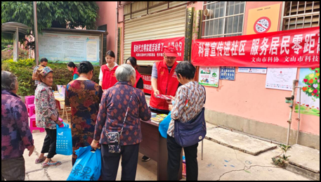 为进一步提升社区居民科学素质,助力全国文明城市创建。近日,文山市科协联合市司法局、教体局、民政局等9个部门以“科普宣传进社区,服务居民零距离”为主题,开展法律知识、健康科普知识等宣传活动。