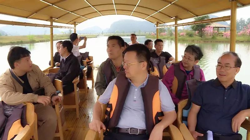 仪式结束后,唐长钟一行人乘坐观光车、竹筏参观了水陌青田的自然风光景色,体验了不一样的文化风情,大家对这个基地的景色和条件赞不绝口。