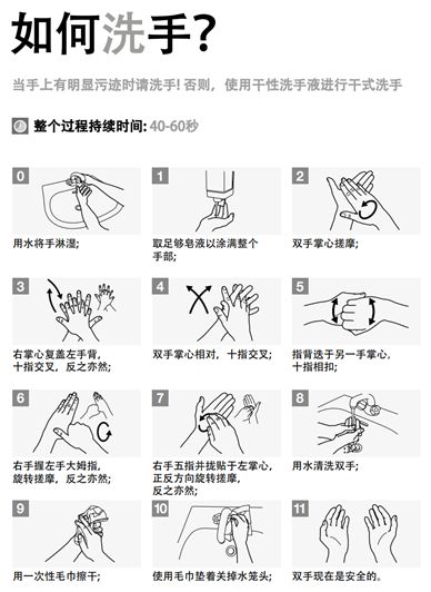在医院、媒体、学校的积极宣传下,大多数人都了解用肥皂(洗手液)流水洗手的步骤。这里我们为大家提供世卫组织推荐的洗手指南(https://www.who.int/gpsc/5may/tools/When-How-leaflet_Chinese.pdf?ua=1)。