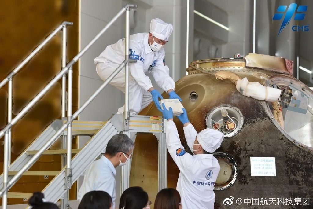 4月26日下午,神舟十三号载人飞船返回舱在京完成开舱,中国农业大学等单位搭载的作物种子顺利出舱。
