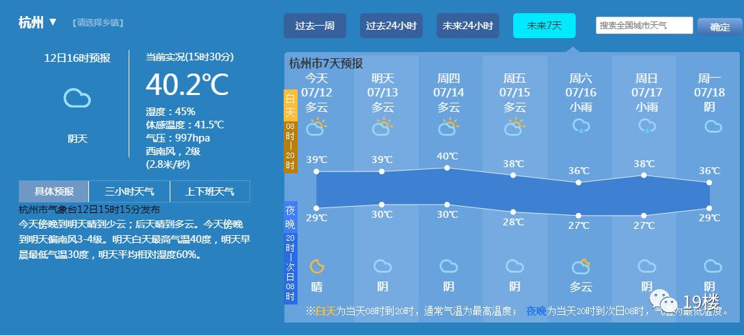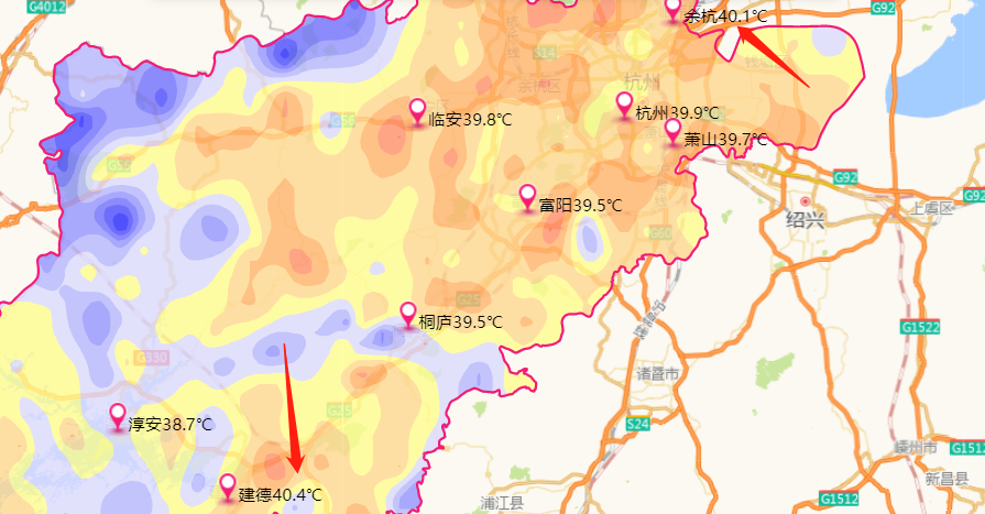 昨天早上,杭州发布了今年首个高温红色预警信号。下午,据杭州气象台官网数据显示,杭州实时气温达到了40.2℃!