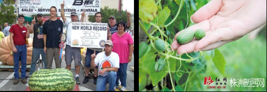 目前,吉尼斯世界纪录上最大的西瓜是产自美国纳西州的316斤巨无霸。虽然它的个头比较大,但是瓜瓤空洞、特别粗糙,不是常见的水红色,果肉偏白,口味并不好,吃起来口感不如一般的西瓜美味,究其原因可能是生长期氮素营养较丰富,加速了果实膨大的速度,但钾素相对缺乏,不利于糖分的积累。而世界上最小的西瓜名叫“佩普基诺”(Pepquinos),也称“拇指西瓜”,只有3厘米长、直径2厘米,它是来南美洲的一种野生植物,1987年一家荷兰公司开始在美国和亚洲种植,但事实上,这货只是长得像西瓜的远亲(西瓜是葫芦科西瓜属,拇指西瓜是葫芦科番马㼎儿属 )。