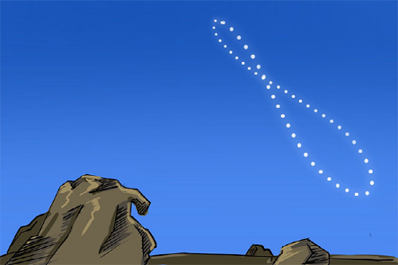 一儿曰:“我以日始出时去人近,而日中时远也。”