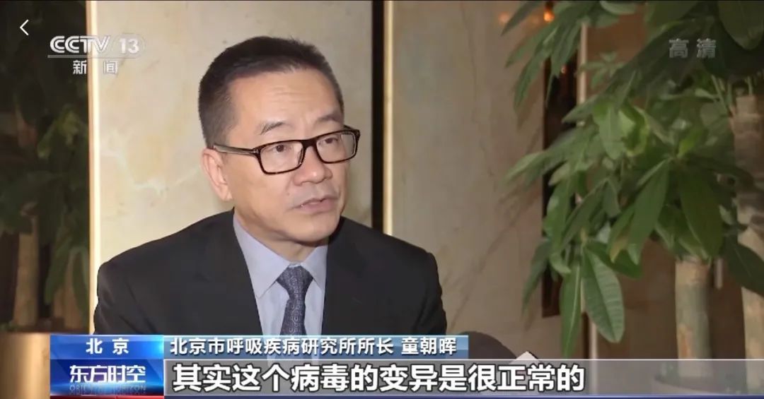童朝晖表示,比方说我们现在北京主要流行是BF.7,目前统计它的无症状和轻型占到98%,所以说大家看了这个数就应该知道,就是说无症状加轻型都占了百分之九十几,说明病毒它对人体主要是侵犯在上呼吸道。