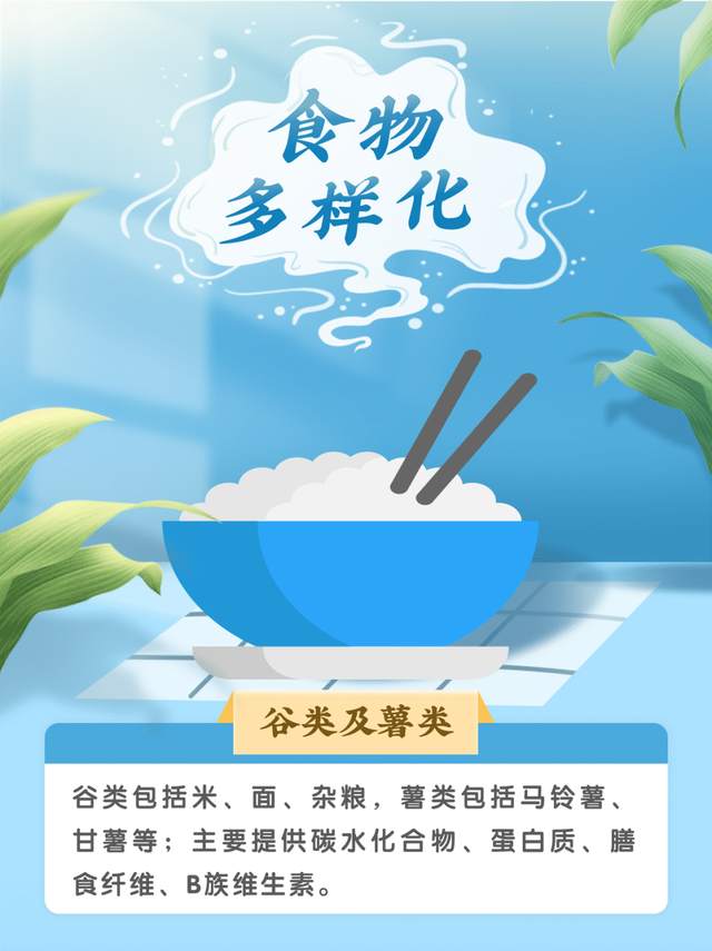 2023年5月第三周是第9届全民营养周一日三餐怎么吃均衡营养是关键人类的食物多种多样,每种食物都含有多种营养成分,但不同食物所含的营养成分不同,除母乳可以满足6月龄以内的婴儿营养需要外,任何一种天然食物都不能提供人体所需的全部营养素。同时,人体对各种营养素的需要量也各不相同。所以,人体每日的饮食必须由多种食物组成,做到平衡膳食,才能满足人体各种营养需要,达到合理营养、促进健康的目的。这也是与不同的经济水平和饮食习惯相适应的。根据《中国居民膳食指南(2022)》推荐,平均每天至少摄入12种食物,每周至少25种,烹调油和调味品不计算在内。