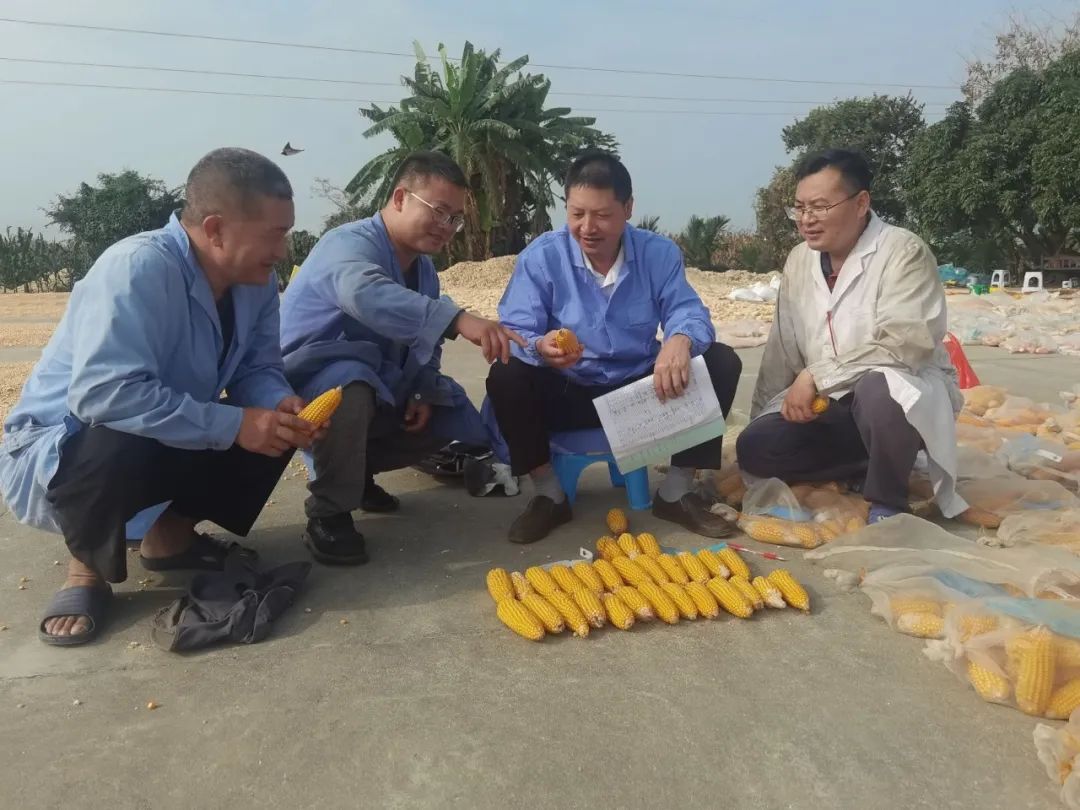朱汉勇(右二)与团队为玉米测产。