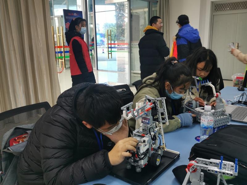 文网讯 12月19日,由文山州科协、州教育体育局共同主办的首届文山州青少年机器人竞赛在文山州职教园区举行,来自全州8县(市)和州高级技工学校的292名中小学生组成146支参赛队伍同台竞技。生动活泼的竞赛形式培养了学生们的团队合作精神、创新意识和实践能力,让他们体验了科技世界的无穷奥秘。 当前,我州正在开展“爱国卫生7个专项行动”,本次比赛就以“爱国卫生行动小卫士”为比赛主题,机器人要完成一场“爱卫行动”。 比赛分为小学组、初中组和高中组,各组的每支队伍由两名学生组成,两名学生在两分钟内需要合作完成机器人粘贴禁烟标识、清扫裸露垃圾、投放垃圾、清理公共厕所4项任务。 比赛前,选手们就对机器人的主控器、传感器、电机和其他零件进行组装和编程,确保比赛时程序运行能在规定场地内完成任务。 来自广南县一小的郑童允、蒋缘圆两位选手,赛前精心准备,竞赛时专心配合,默契地完成了一项项“爱卫行动”闯关挑战任务,第一轮就获得408.1的好成绩。 在待赛区,初中组和高中组的选手们个个神情专注地调试着设备,大家根据现场给出的场地图进行电脑编程,或根据需要进行机器人搭建,为比赛做足准备。 赛场上,选手们各显神通,展开了一场场精彩比拼。裁判员根据完成4项任务的时间、顺畅度等进行评分。每支队伍进行两轮比赛,按两轮相加的总分排名。 通过两轮激烈的对决,最终马关县第一小学的陈炫宇、石中富获小学组一等奖;富宁县第一中学的阮辛酉、梁宗林获初中组一等奖;富宁县第一中学的陈源、段天情获高中组一等奖。 据了解,此次青少年机器人竞赛平台的搭建,既是我州青少年机器人教育的普及推广交流平台,也是中国青少年机器人竞赛、云南省青少年机器人竞赛的基层选拔赛事平台。 此次竞赛,除机器人比赛外,场外还设置了机器人、无人机科普展示。赛事情况通过bilibili手机端进行了全程直播。 (记者:吕静) (编辑:唐雪娇 排版:钟晓明 审核:梁丹)