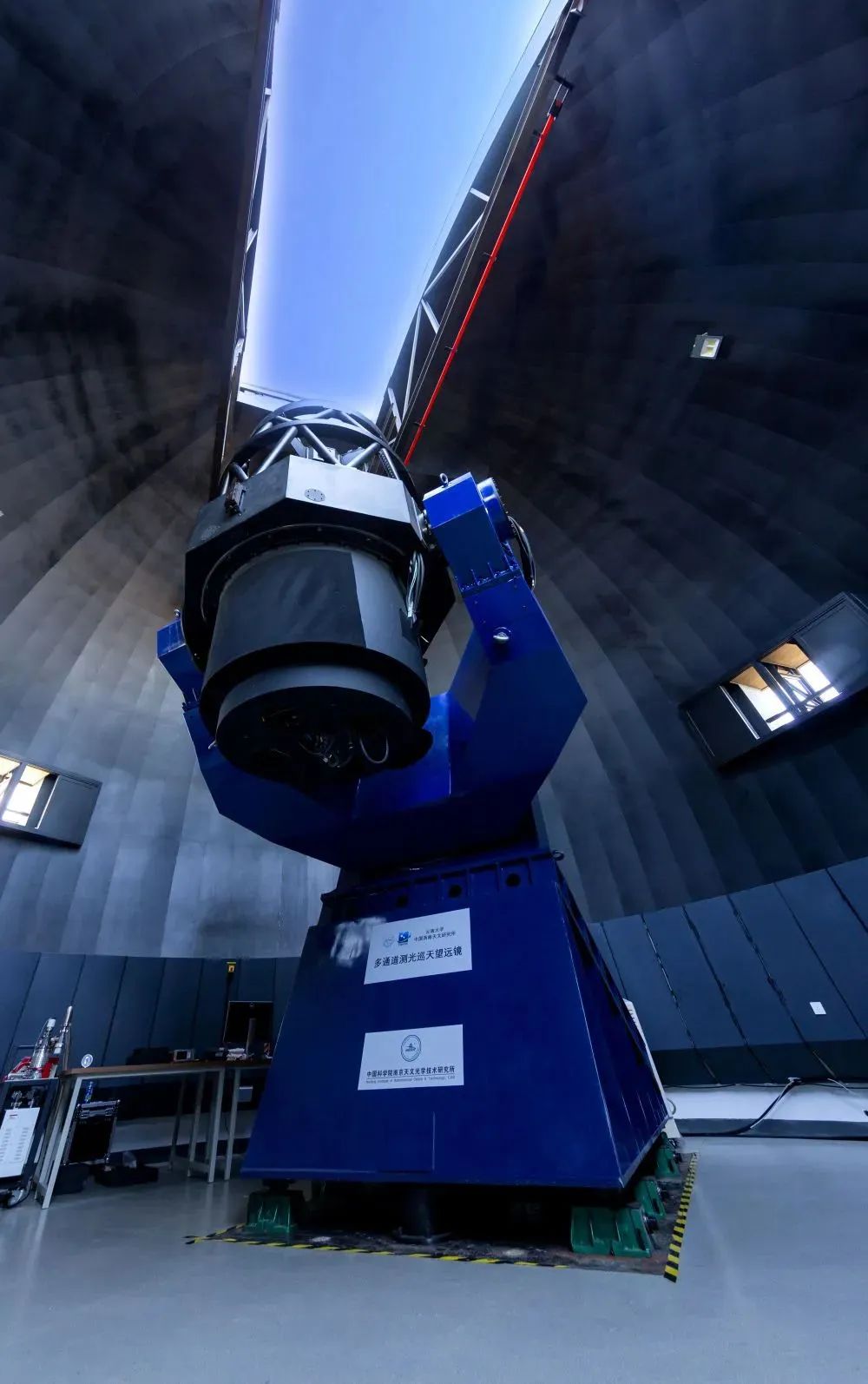 据悉,该望远镜项目于2018年1月通过专家评审并正式立项,其主体由南京天文光学技术研究所负责研制,2021年6月与云南天文台合作,完成丽江高美古台址建设。2023年12月21日首次实现蓝黄红三通道同时出光。