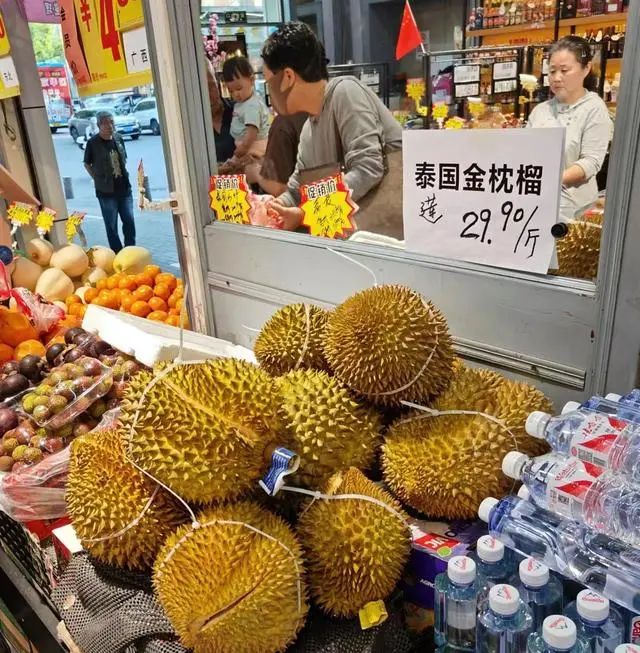 不光云南,在北京,榴莲也降价了。“前几天来店里,榴莲还是40多元一斤,当时还舍不得买,今天就降到30元以内了。”在北京团结湖公园附近的果多美超市内,市民孙先生正挑选榴莲,他挑了一个5.1斤重的泰国金枕榴莲,花费152元。另一名顾客购买了一颗小个头的榴莲,花费不到百元。